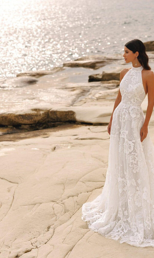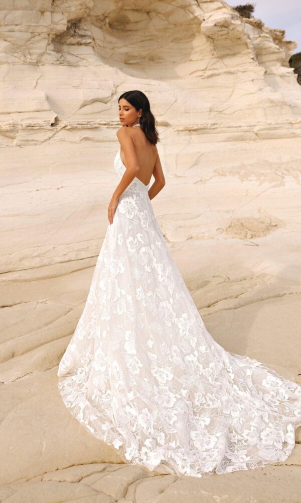 wedding dress Briar from the White Stones New collection by Victoria Soprano features an A-line silhouette. This dress has detachable sleeves with semi-sweetheart neckline. Glitter embellishment and a natural waistline is designed to make you look stunning.