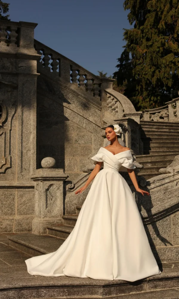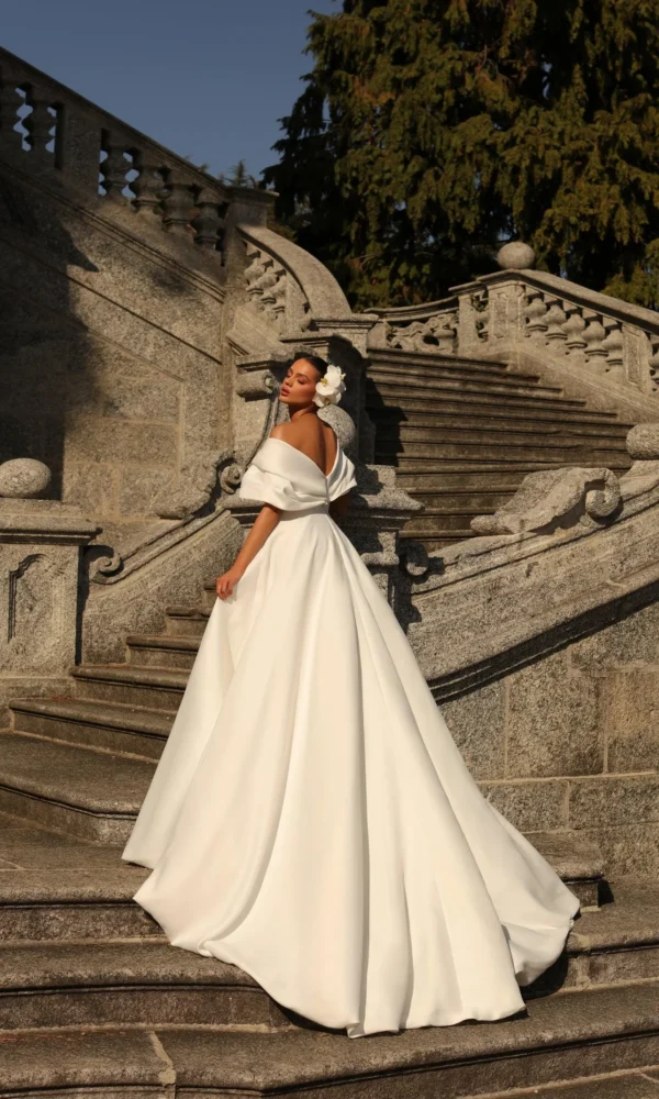 bride's dress Flower from the Magic Flower collection by Victoria Soprano features an A-line silhouette. This dress has spaghetti with deep neckline neckline. 3d application embellishment and a natural waistline is designed to make you look stunning.