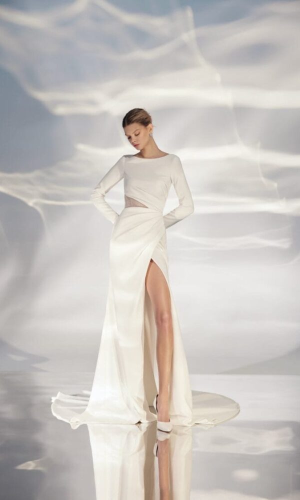 Beach bride's dress L328 from the Starlet collection by Ariamo features an Short silhouette. This dress has long sleeves with v-neck neckline and a natural waistline is designed to make you look stunning.