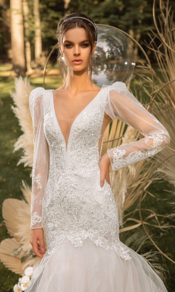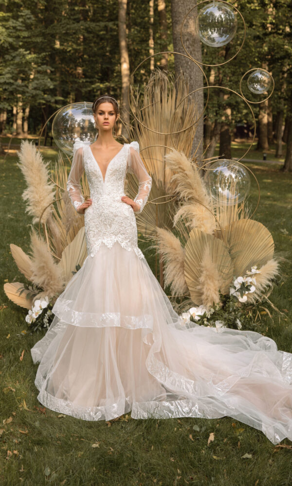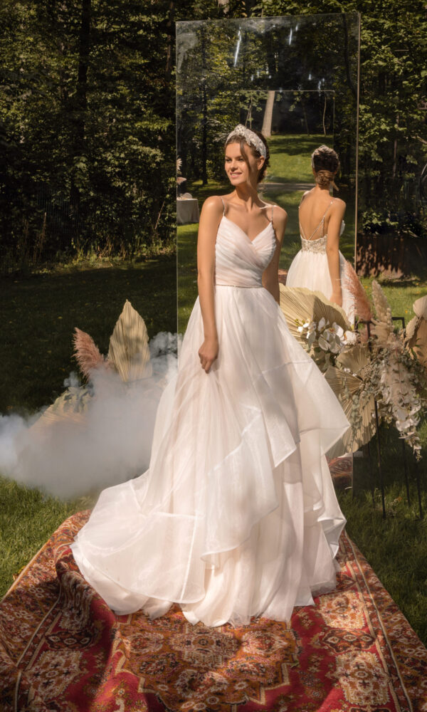 Romantic marriage gown Vanilla from the Forest Fairies collection by Victoria Soprano features an A-line silhouette. This dress has strapless with v-neck neckline. Embroidery embellishment and a natural waistline is designed to make you look stunning.